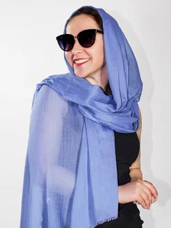 Палантин хлопковый летний синий