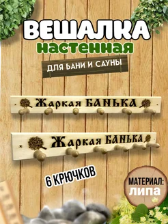 Вешалка'Жаркая Банька" деревянная,настенная в баню(надпись)