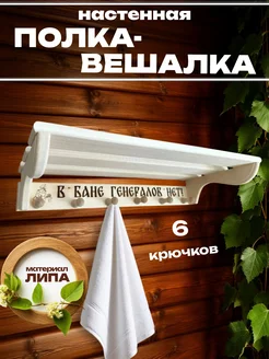 Вешалка-полка "В Бане генералов нет" 6 крючков,для бани