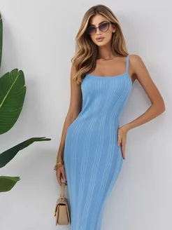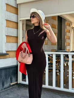 Платье трикотажное длинное лапша без рукавов