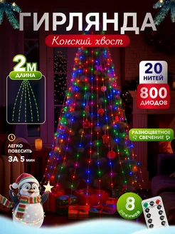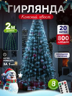 Конский хвост 2 м с пультом 800 диодов прозр провод белая