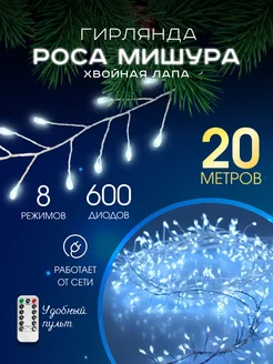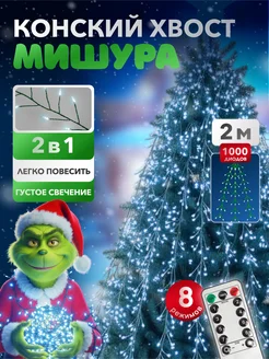 Конский хвост МИШУРА 2 метра 20 нитей с пультом белая