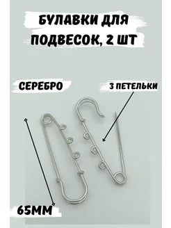 Булавка декоративная для украшений 65мм, 2шт, 3 петельки