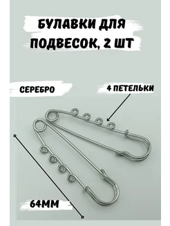 Булавка декоративная для украшений 64мм, 2шт, 4 петельки