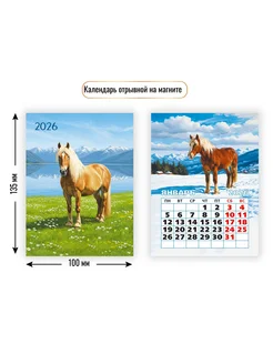 Мини-календарь отрывной на магните 2026 Символ года лошадь
