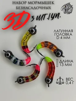 Мормышка безнасадочная 3D латунная головка 5 шт