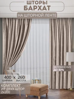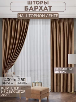Шторы Бархат светло-коричневые 400х260 - 2 шт. по 200х260