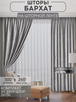 Шторы Бархат светло-серые 300х260 - 2 шт. по 150х260
