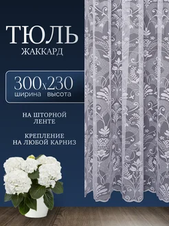 Тюль с ламбрекеном, с рисунком, Белый 300x230