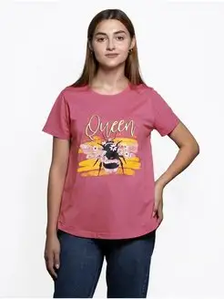 Футболка женская с принтом базовая хлопок однотонная Queen
