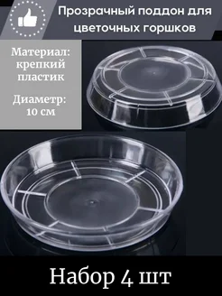 Прозрачный поддон блюдце для горшков и растений 10 см 4 шт