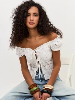 Топ кружевной на завязках вечерний летний с коротким рукавом