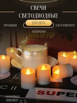 Свечи светодиодные мерцающие набор с батарейками, 6 шт
