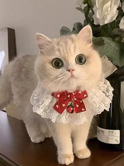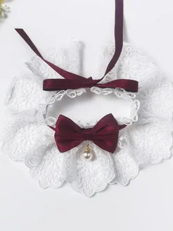 Кружевной ошейник с бантом для кошек и собак, бордовый