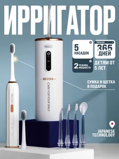 Ирригатор для зубов портативный с насадками и электро щеткой