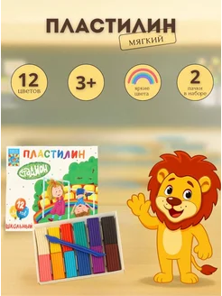 Пластилин набор 12 цветов, 2 пачки