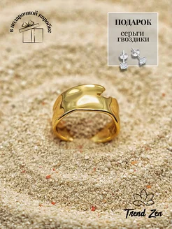 Кольцо бижутерия широкое безразмерное под золото