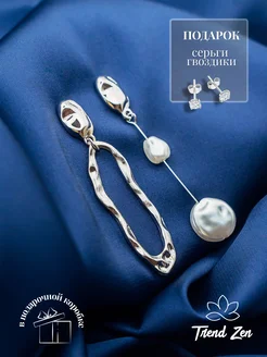 Серьги бижутерия длинные асимметричные висячие с жемчугом