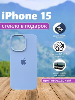 Чехол на iPhone 15 силиконовый голубой