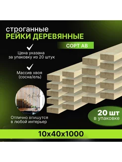 Рейка деревянная 10х40х1000мм, набор 20шт TriviaMarket