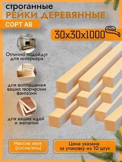 Рейка деревянная, 10х30х1000мм, набор 30шт TriviaMarket