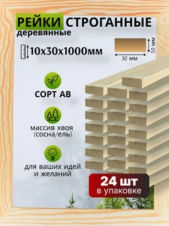 Рейка деревянная, 10х30х1000мм, набор 24шт TriviaMarket