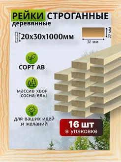Рейка деревянная, 20х30х1000мм, набор 16шт TriviaMarket