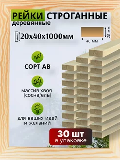 Рейка деревянная, 20х40х1000мм, набор 30шт TriviaMarket