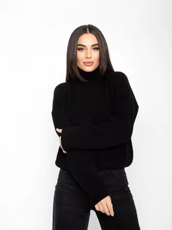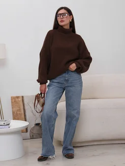 Свитер вязаный оверсайз с горлом объемный