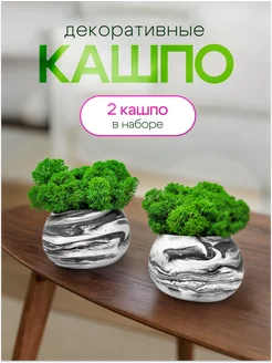 Кашпо из гипса для интерьера со мхом ягель декор для дома