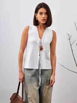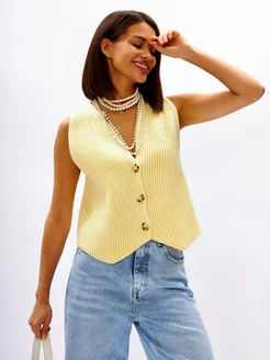 Жилетка вязаная с пуговицами приталенная удлиненная