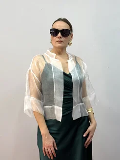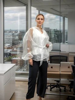 Блузка нарядная офисная вечерняя в горох шифоновая с бантом