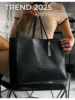 Сумка шоппер кожаная плетеная большая