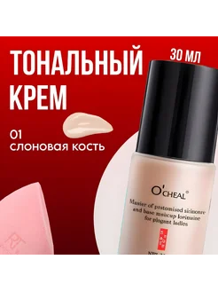 Тональный крем для лица тон со спонжем №1