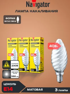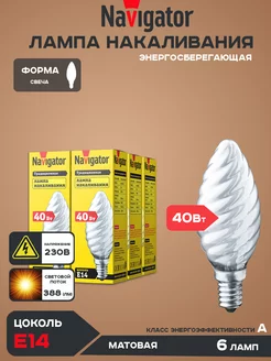 e14 лампочка navigator теплый свет матовая витая свеча 40 ВТ