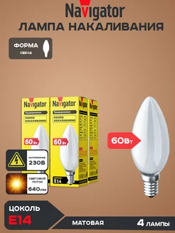 e14 лампочка navigator теплый свет матовая свеча 60 ВТ
