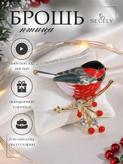 Брошь Птица снегирь на ветке необычная на платье и одежду