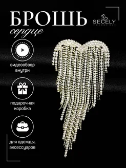 Брошь Модная Сердце с длинными цепочками из страз