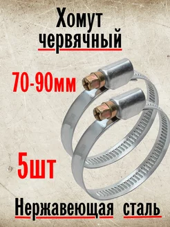 Хомут червячный стяжка 70-90мм 5 шт