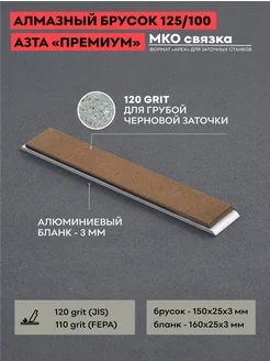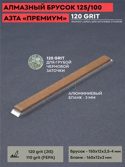 Алмазный брусок 125 100 ПРЕМИУМ МКО, 100%, 160х12х6 мм