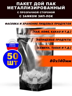 Пакет металлизированный с прозрачной стороной 80*140, 50 шт