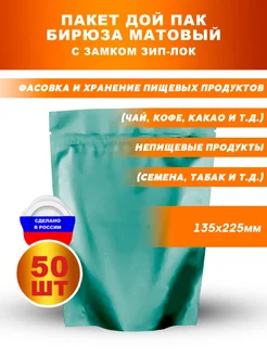 Пакеты упаковочные дой пак бирюзовый матовый 135*225, 50 шт