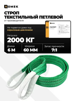 Строп текстильный петлевой СТП, чалка для крана 2 т 6 м