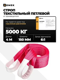 Строп текстильный петлевой СТП, чалка для крана 5 т 4 м