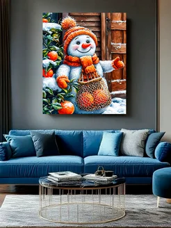 Картина на стену для интерьера 40х50 Снеговик с мандаринами