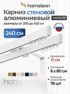 Карниз 240см настенный двухрядный из алюминия
