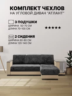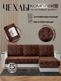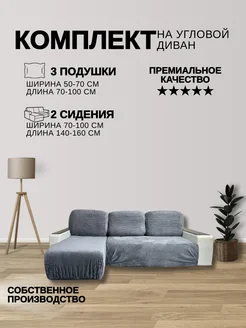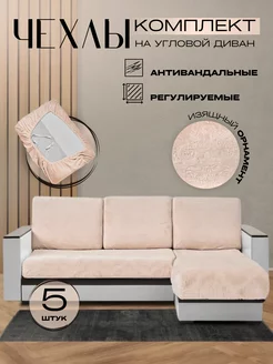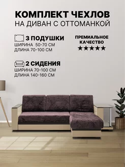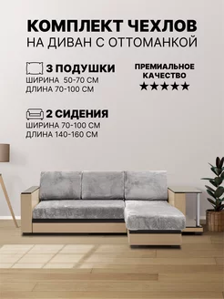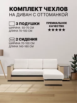 Комплект чехлов на угловой диван с оттоманкой на резинке