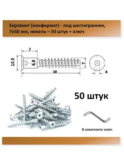 Конфирмат 7х50 мм - 50 штук + ключ