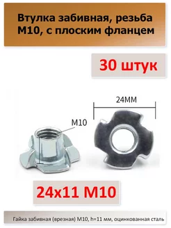 Гайка забивная (врезная) М10, h=11 мм, 30 штук