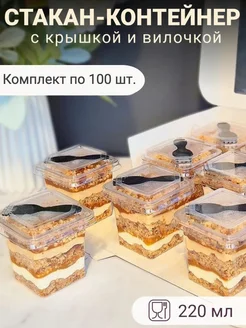 Стакан контейнер одноразовый с крышкой и вилкой для десертов
